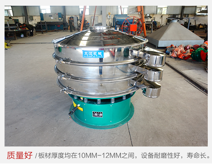 大漢廠家生產(chǎn)的雙層旋振篩采用優(yōu)質(zhì)碳鋼或不銹鋼材質(zhì),板材厚度均在10mm-12mm之間,設(shè)備耐磨性好,使用過程中不會(huì)因設(shè)備質(zhì)量問題而造成設(shè)備停機(jī)問題,可以在很大程度上降低設(shè)備的維護(hù)費(fèi)用。