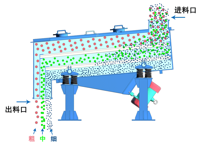 滾筒篩由一個穿孔的圓柱形滾筒組成,該滾筒通常在進料端以一定角度升高,當進料沿旋轉滾筒螺旋向下時實現物理尺寸分離,其中小于篩孔的尺寸過小的材料通過篩網,而尺寸過大的材料從滾筒的另一端排出,用于粘性和纖維材料的分類,例如在煤炭或天然石材工業中。