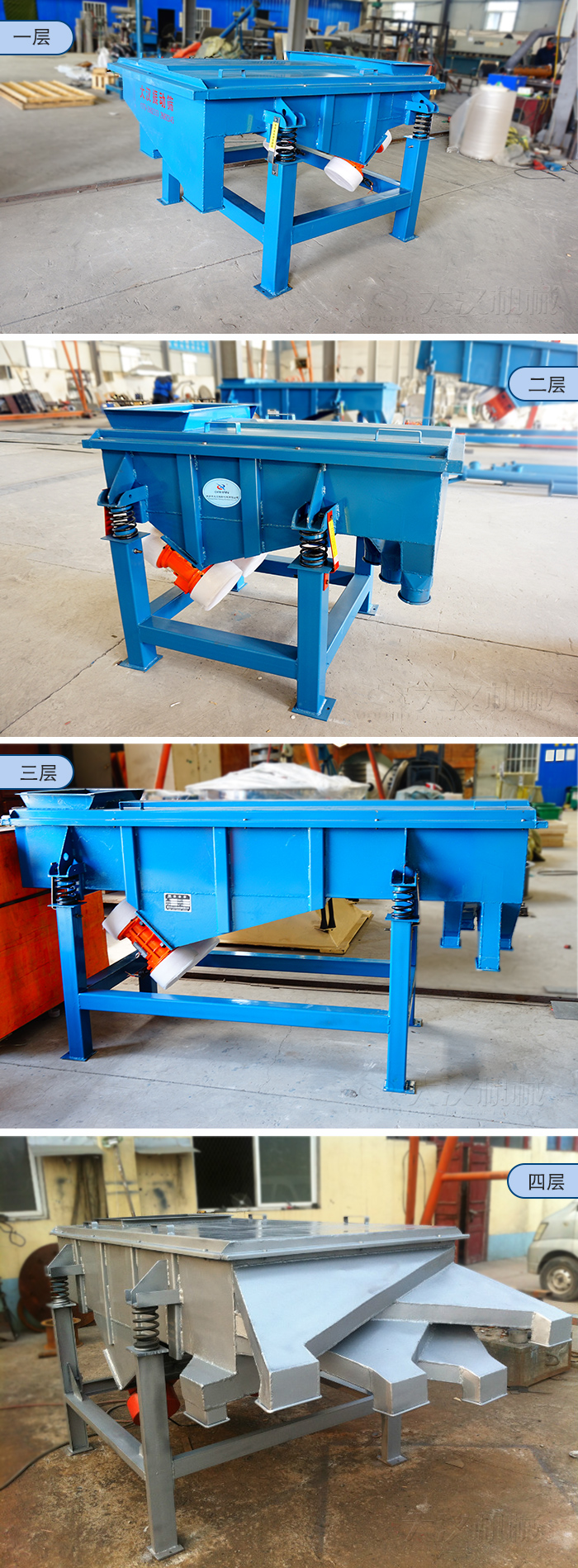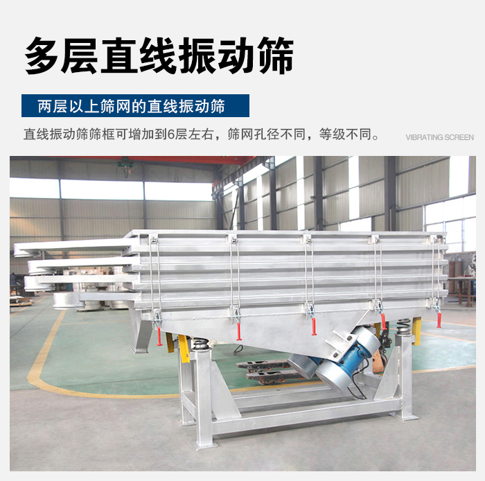 多層直線振動篩是指:兩層以上篩網的直線振動篩,直線振動篩篩框可增加到6層左右,每層的篩網孔徑不同,所篩出的東西就會有不同等級,因此多層的直線振動多使用到一些有特殊要求的行業中。