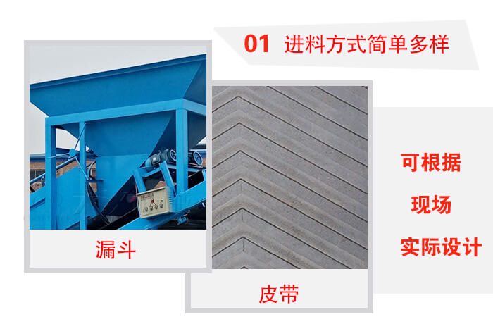 我公司研制的重型滾筒篩進料口可根據(jù)現(xiàn)場實際設計,無論是皮帶、漏斗或其它進料方式,不用采取特殊措施,都可以順暢進料。