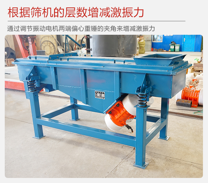 5、用戶可根據(jù)篩機的層數(shù),物料比重不同來增減篩機的激振力(通過調(diào)節(jié)振動電機兩端偏心重錘的夾角來增減激振力),使篩機達到最佳的篩分效果。